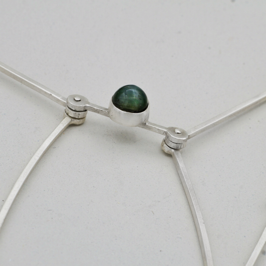 Geometric Collar Necklace with Green Cat's Eye Tourmaline