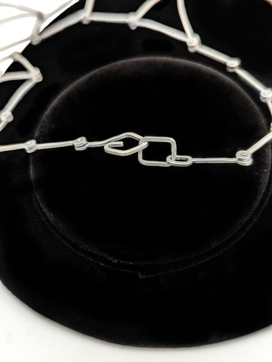 Ancient jewelers were able to create stunning and intricate pieces with the use of primitive tools, literally modified sticks and stones. This modern collection is a nod to these jewelers. The pieces are held together by rivets of sterling silver and 18K gold to allow movement.