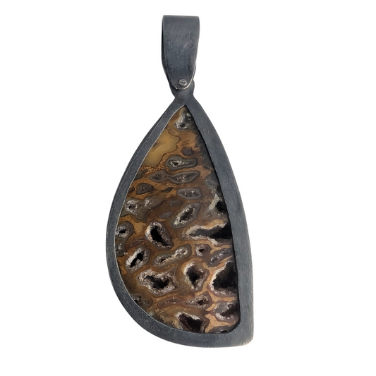 Dark Silver Fossilized Wood Pendant with Champagne Diamond