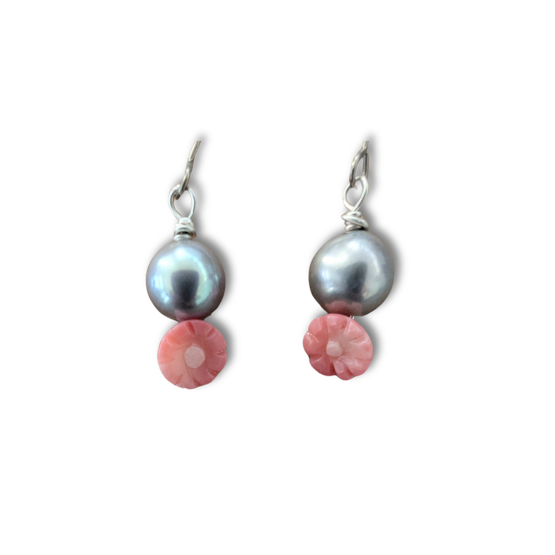 Clear Quartz and reconstituted red Coral bird on fine silver wire with a titanium earwire