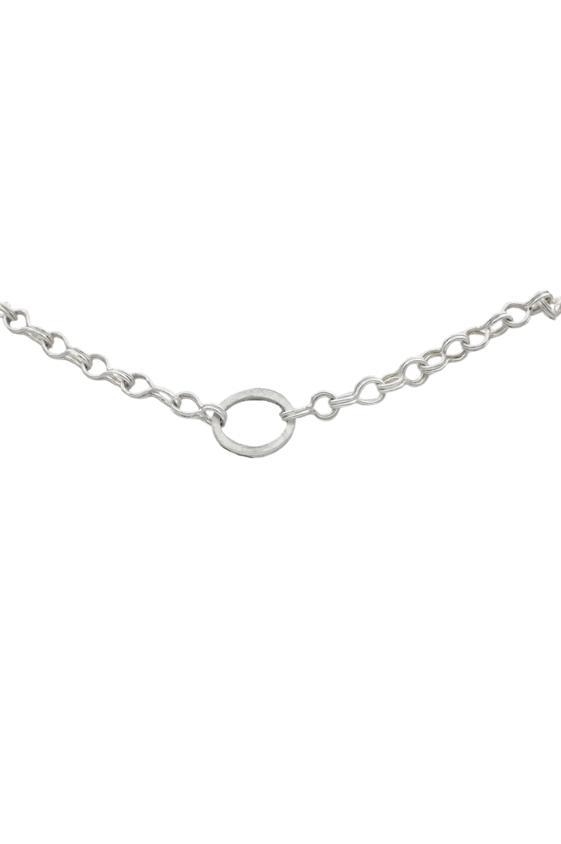 This Fine Silver bracelet is crafted from handmade sailor chain and features a Sterling Silver oval charm as the focal point.