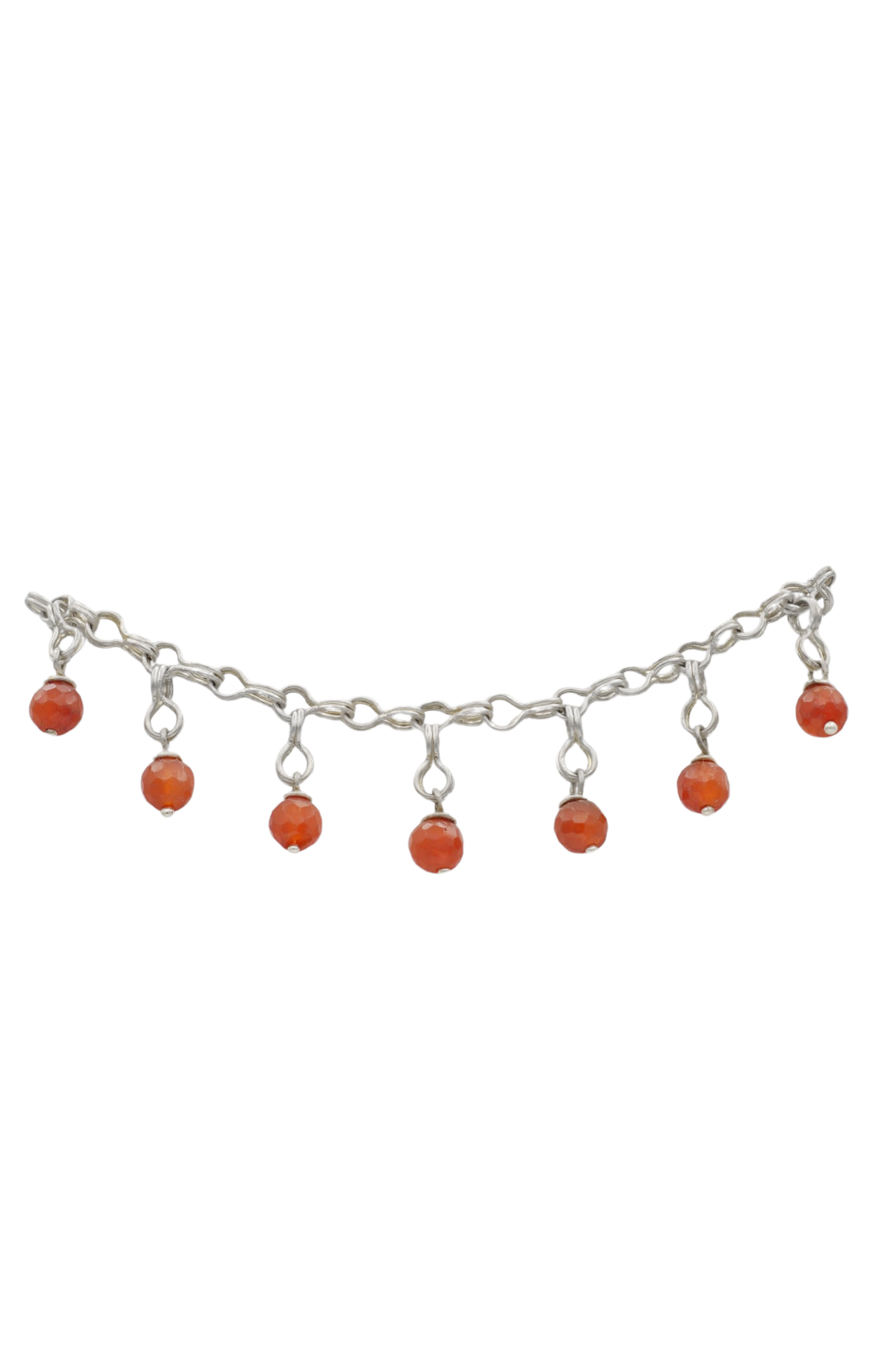 This fine silver handmade sailor chain bracelet features 11 carnelian beads for a simple yet stunning look.