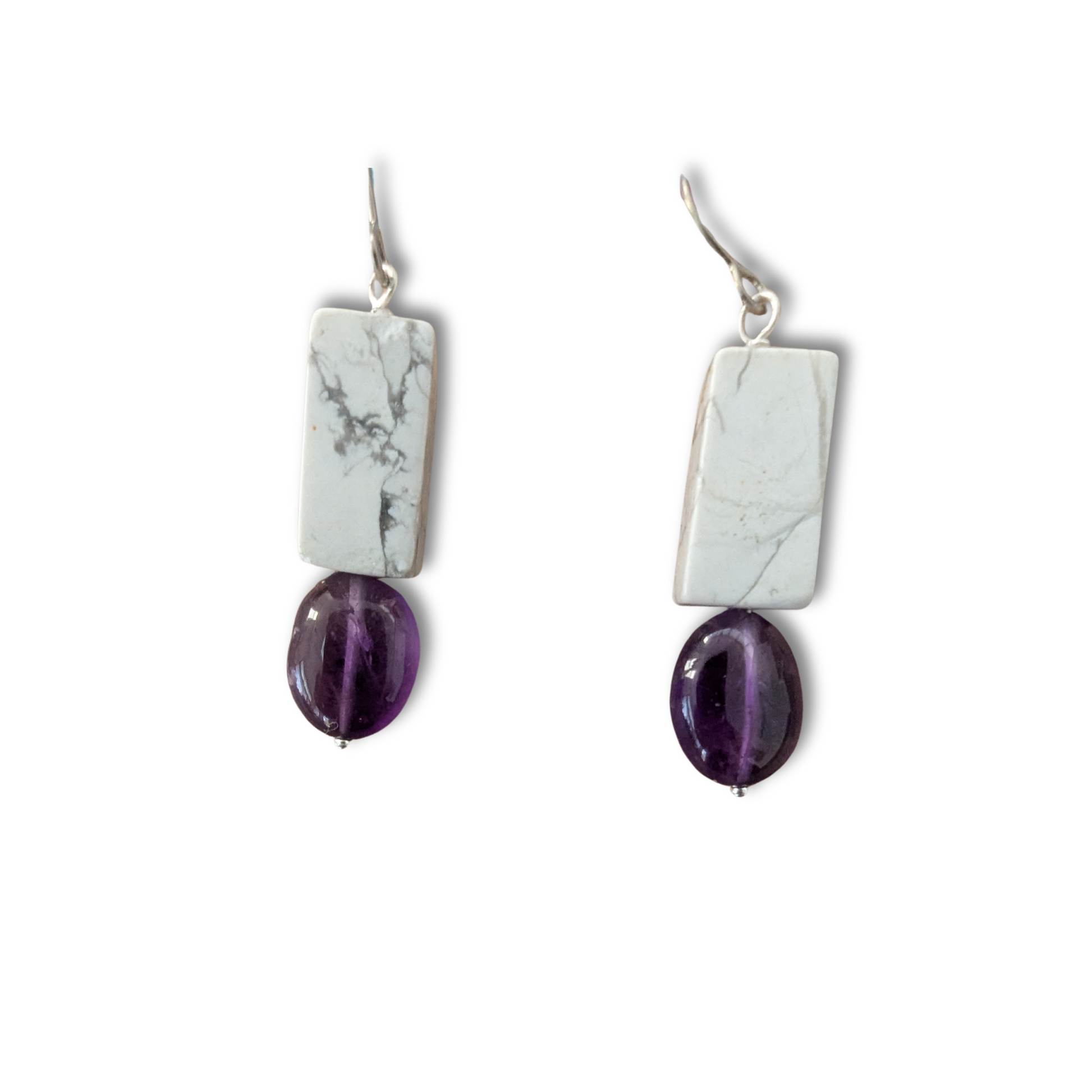 Amethyst Pebbles and Howlite on fine silver wire with a titanium earwire