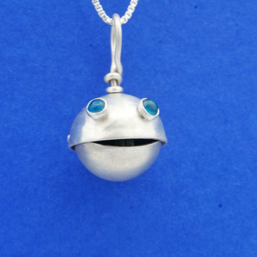 Bauble Head Pendant with Silver Tongue and Blue Apatite Eyes