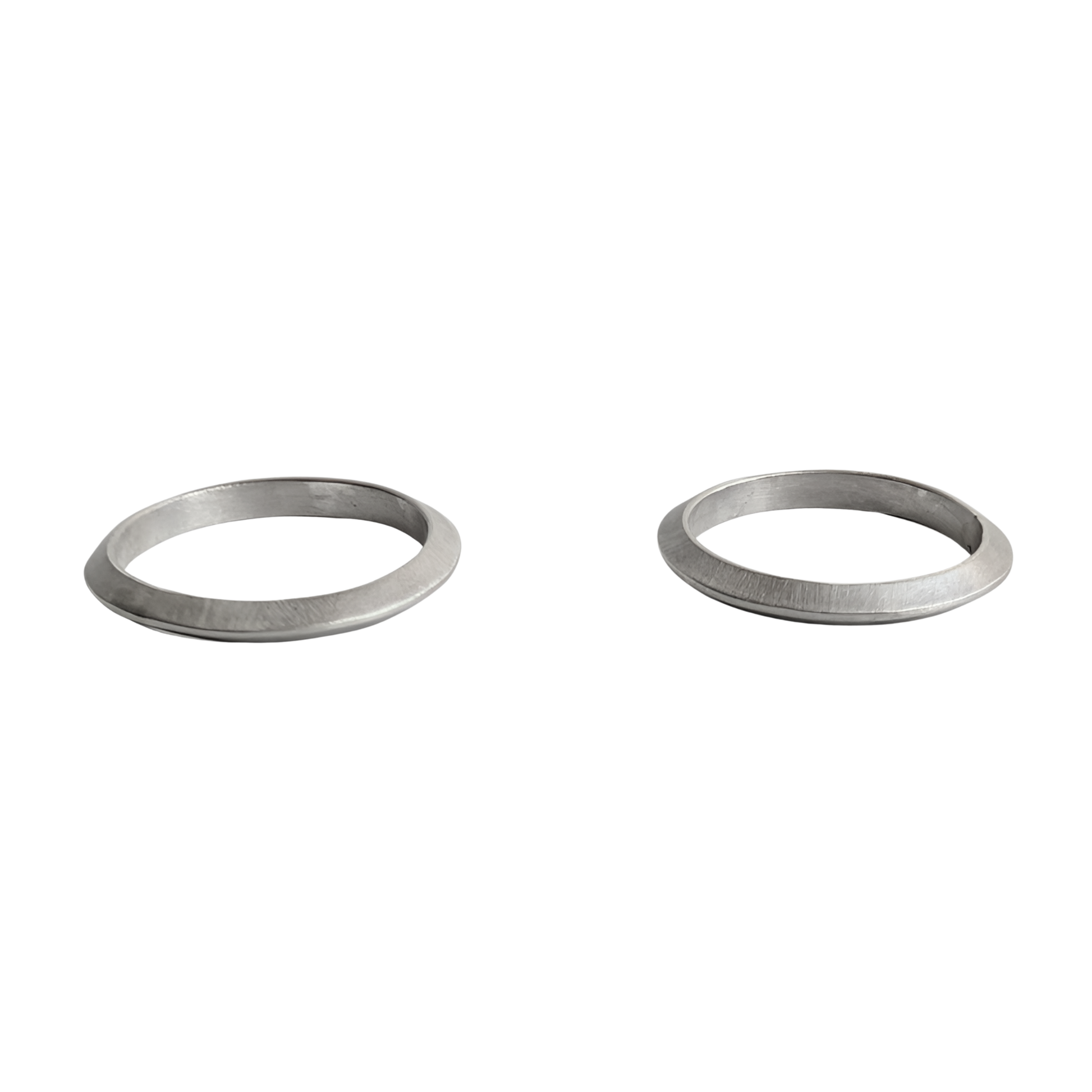 This Sterling Silver ring has a triangular or knife edge band shape.
